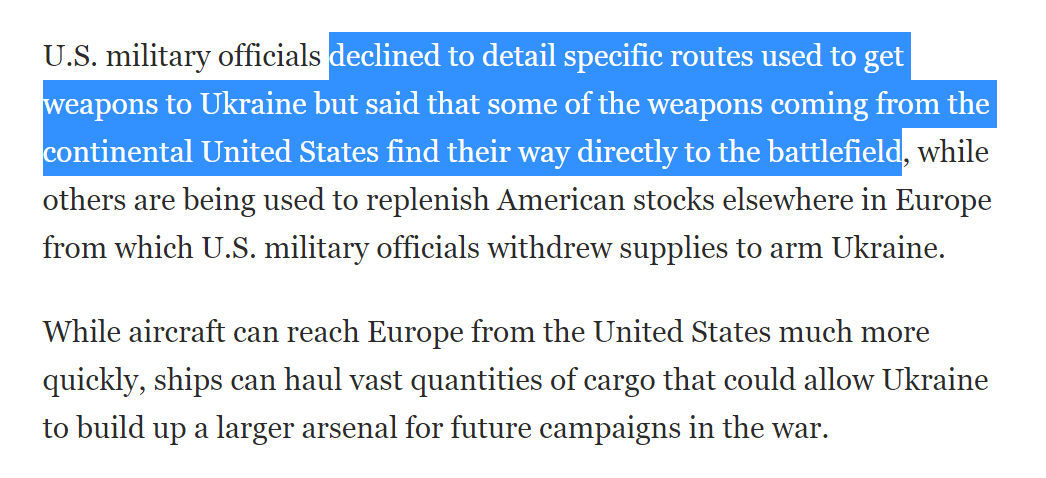 Like I said, the "grain deal" was a catastrophic mistake for Russia; Ukraine isn't sending grain to anyone, but the US are now likely using Russia's "humanitarian sea corridors" to smuggle weapons directly into Ukraine, ignoring the agreement. Stupid of Moscow to agree to this.