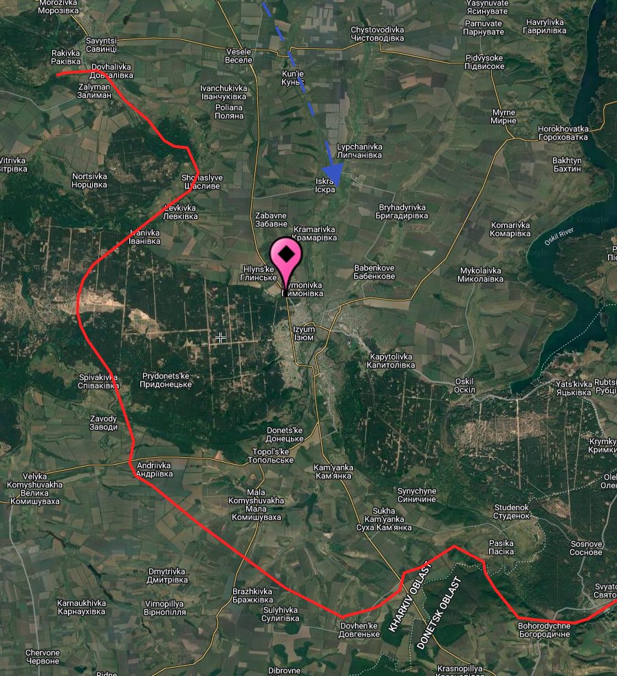 AFU confirmed on the edge of Izium by video. Exact route to Izium is for me unknown, so I made a guess.