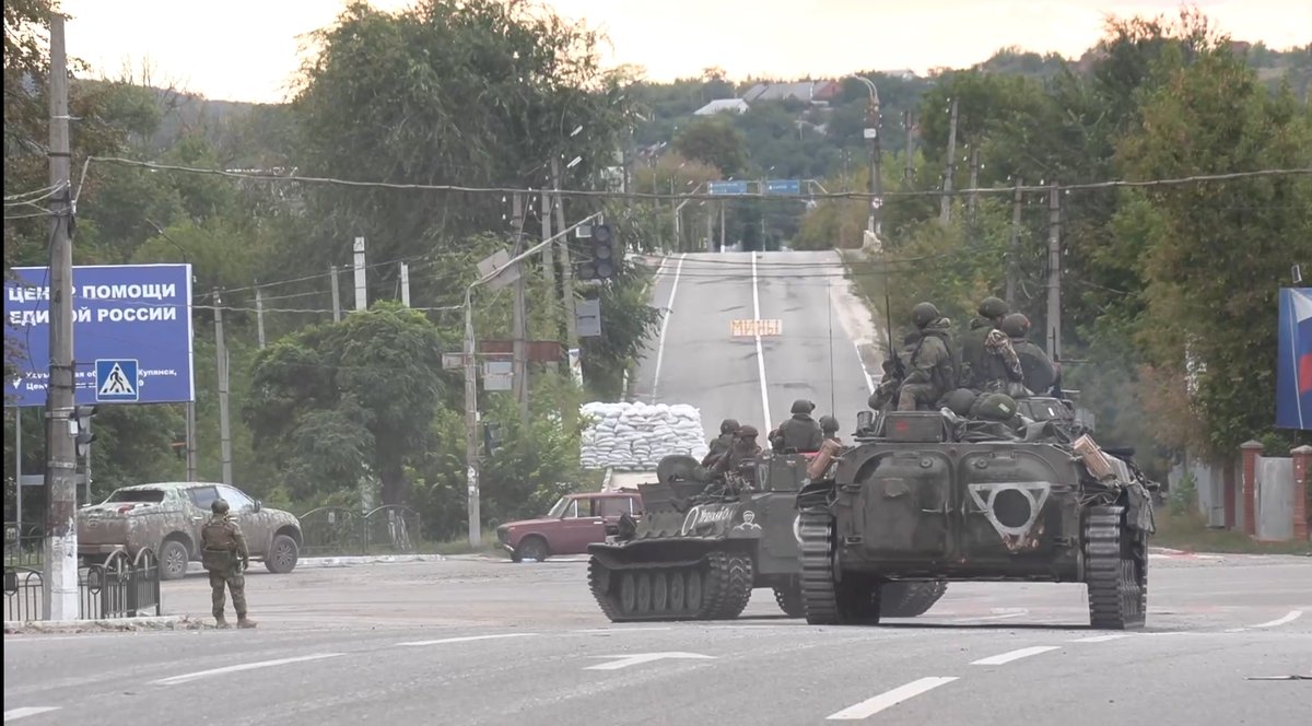 I geolocated the location of the BTRs in this video to Kup'yans'k. I believe that part of the video is a few days old, the convoy seems to come from the bridge, and it has been blown up now.