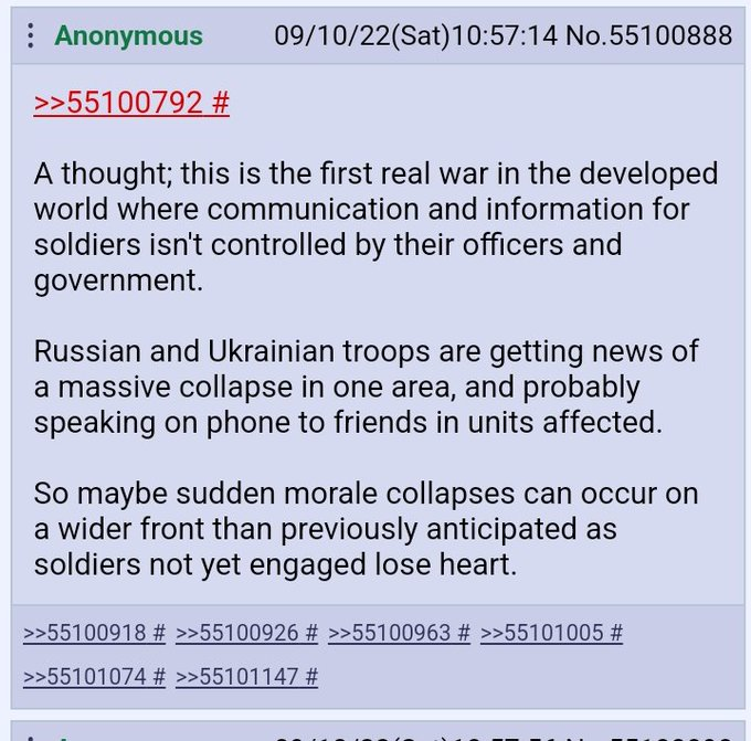 AFU troops are saying the RuAF abandoned all of their equipment & ammo in Izyum intact. Other reports say the same across other areas of Kharkiv. This should be enough to equip another 10k-20k AFU troops.