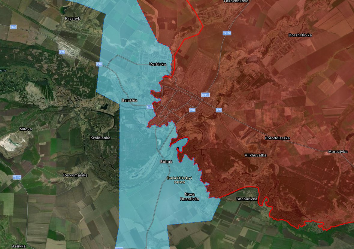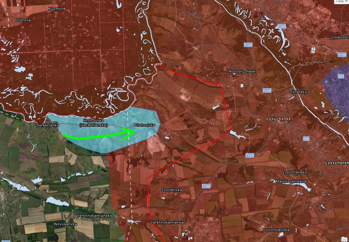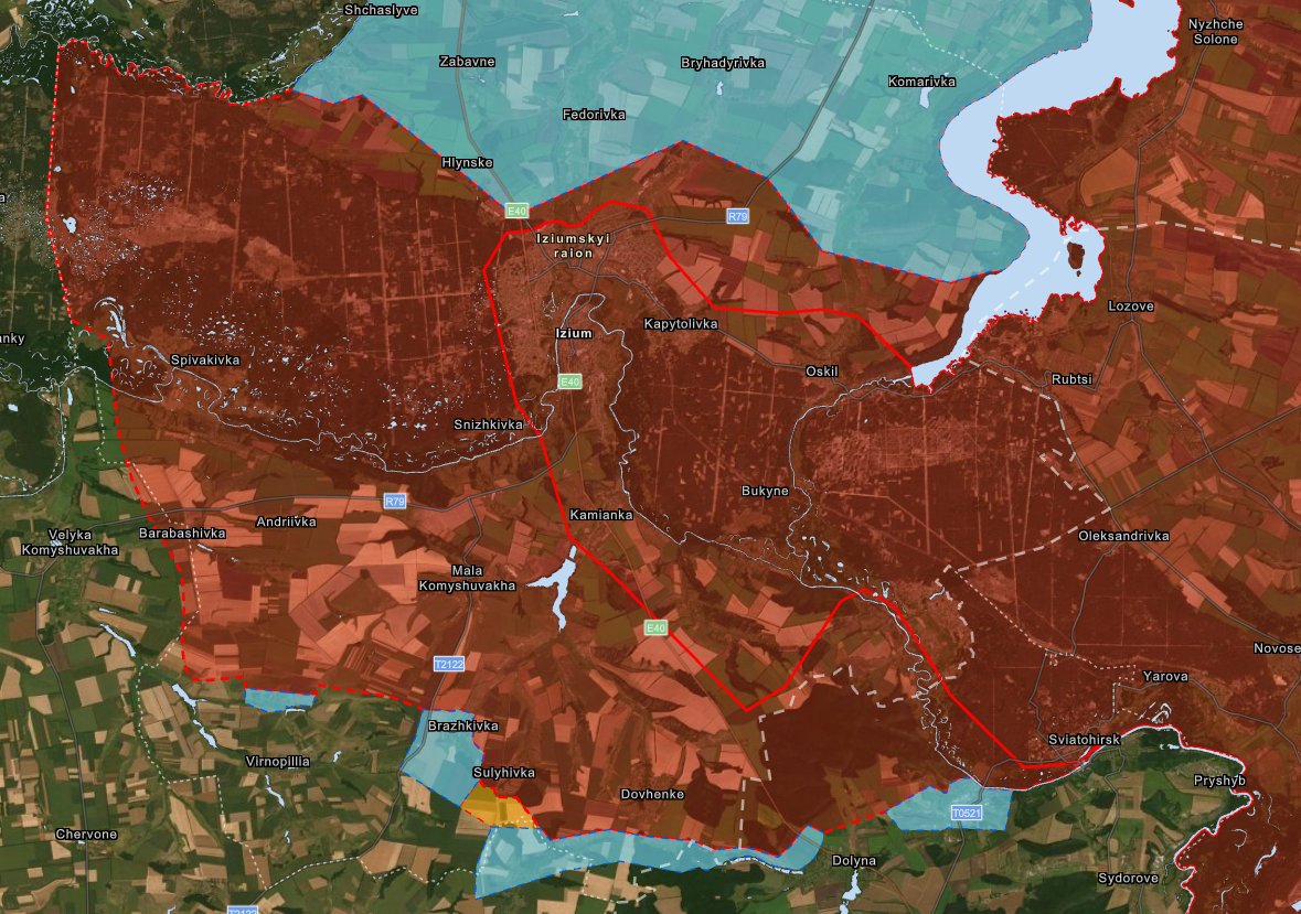 Forces south of Izyum City near Kamianka and Mala Komyshuvakha need to cross the Seversky Donetsk River AND the Oskil Eiver while defending the whole group's southern flank from Ukrainian forces advancing in the Dibrove - Sulyhivka - Dovhenke direction.