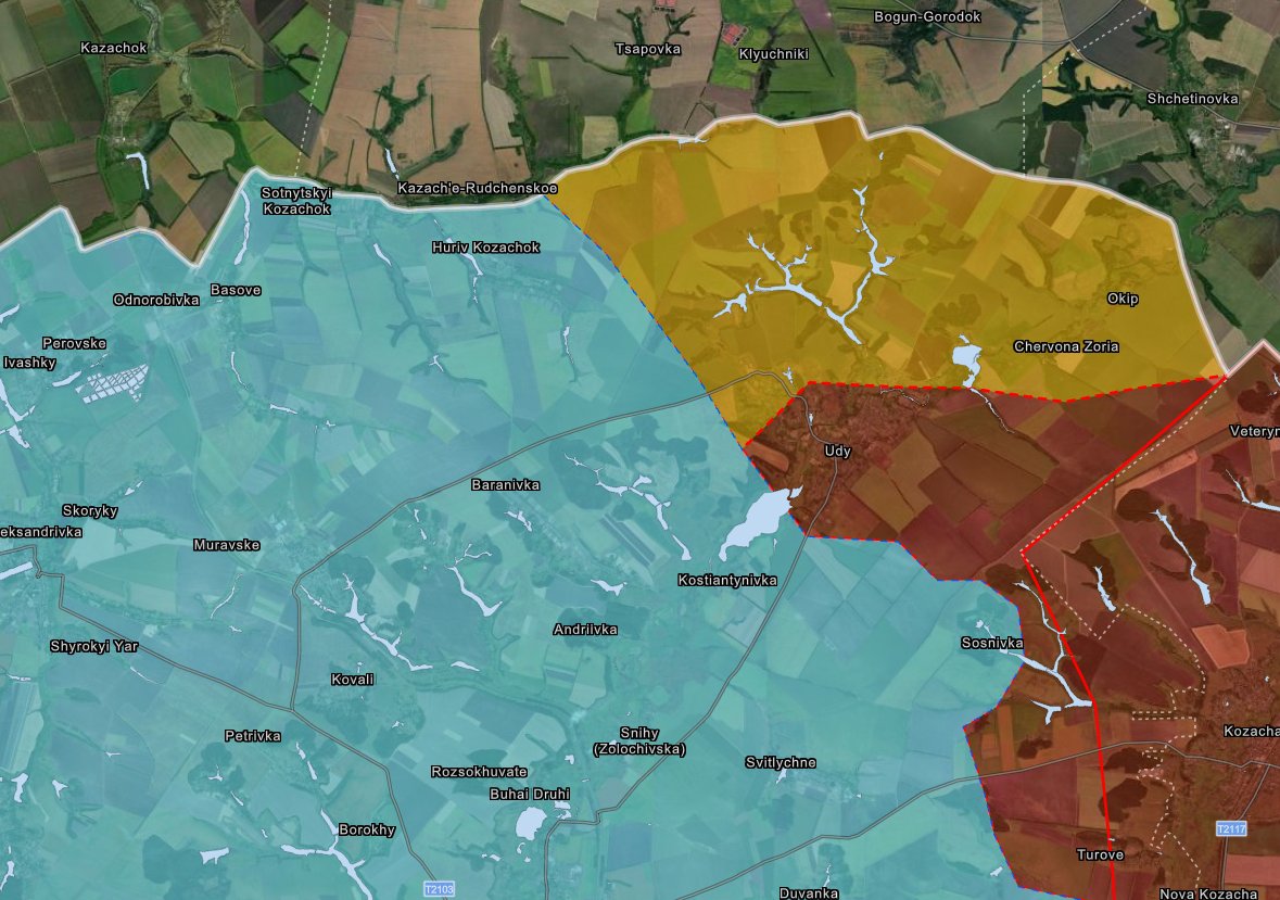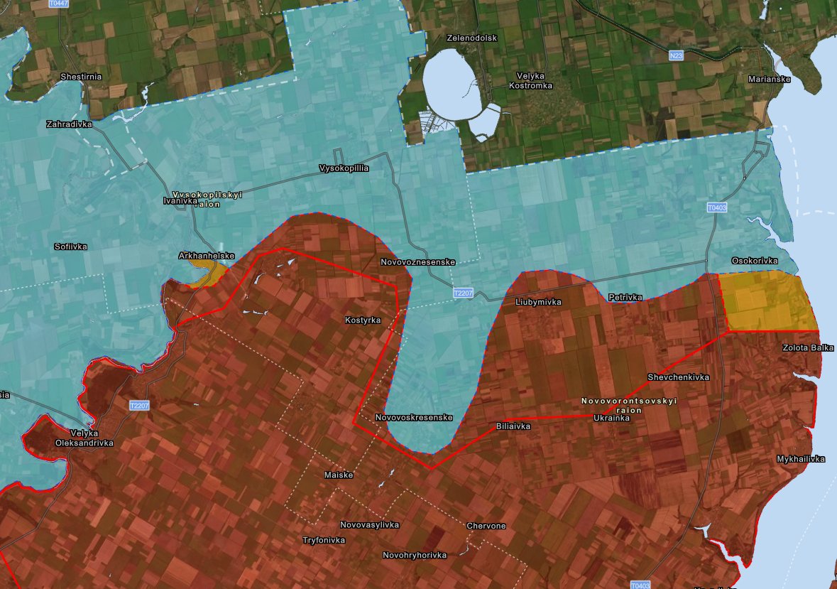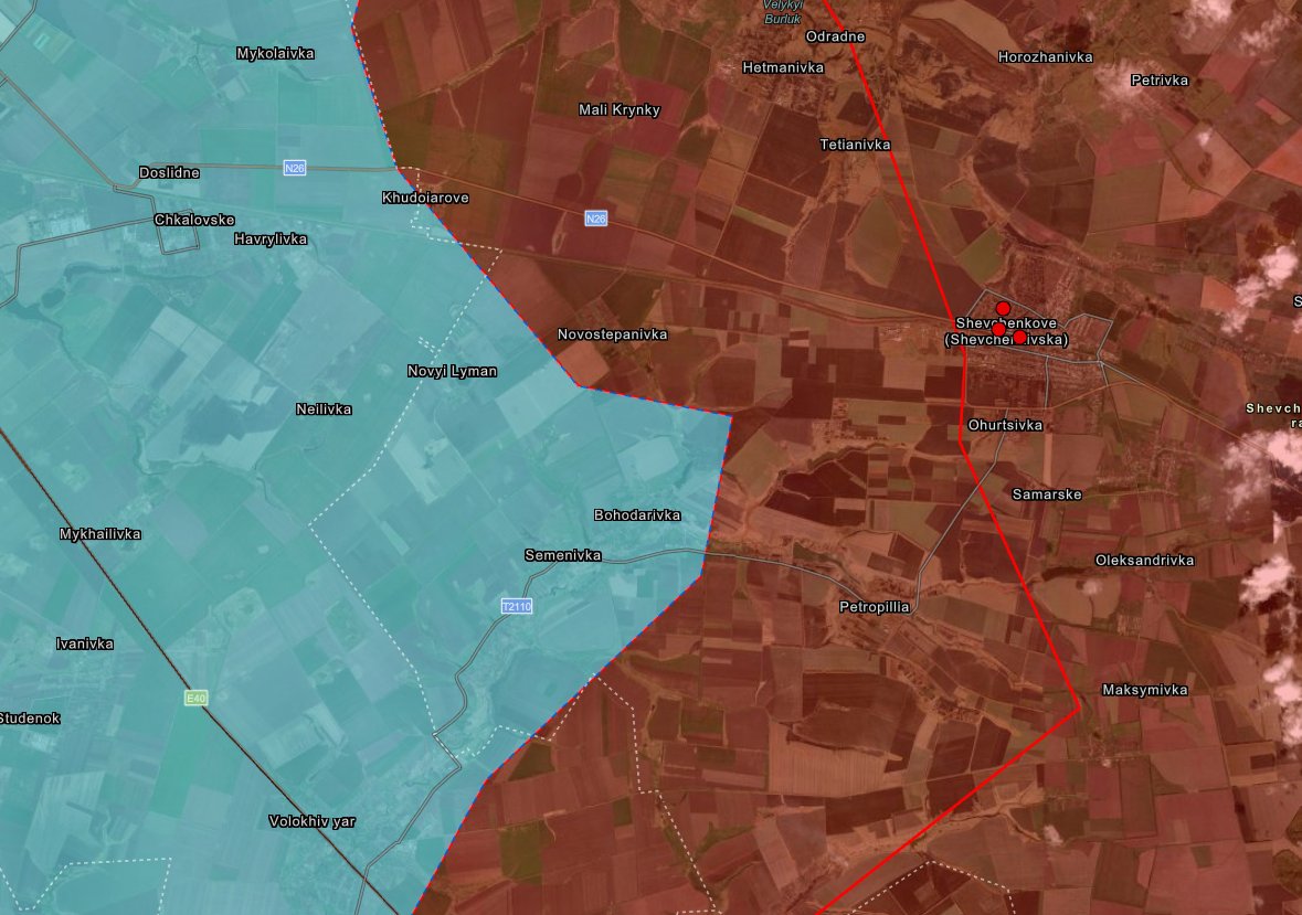 No visual evidence clearly depicts Ukrainian forces having reached beyond the village. Most Russian sources state that Russian airborne elements are defending Shevchenkove. NASA FIRMS data shows heat anomalies in the western outskirts of Shevchenkove - signs of fighting.