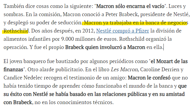 Macron trabajaba para la banca Rothschild antes de llegar a la Presidencia de la República, se necesita mucha pasta para que una candidatura independiente, sin las estructuras que tiene un partido político gane las elecciones...