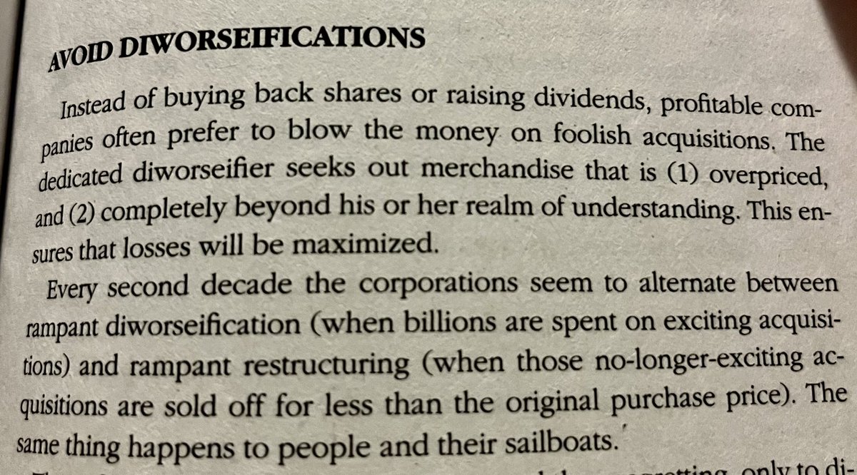 2./ Companies should focus on what they know will add value. This is a good clue on reinvestment of cash flows vs. growing inorganically for the sake of it. It’s up to you as an investor to spot the difference.
