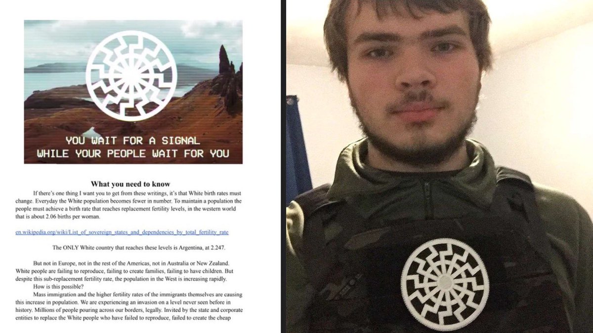 De nuevo el sol negro es uno de los simbolos caracteristicos de los terroristas nazis, como el supremacista que mató a 10 afroamericanos y latino en Buffalo (EEUU).