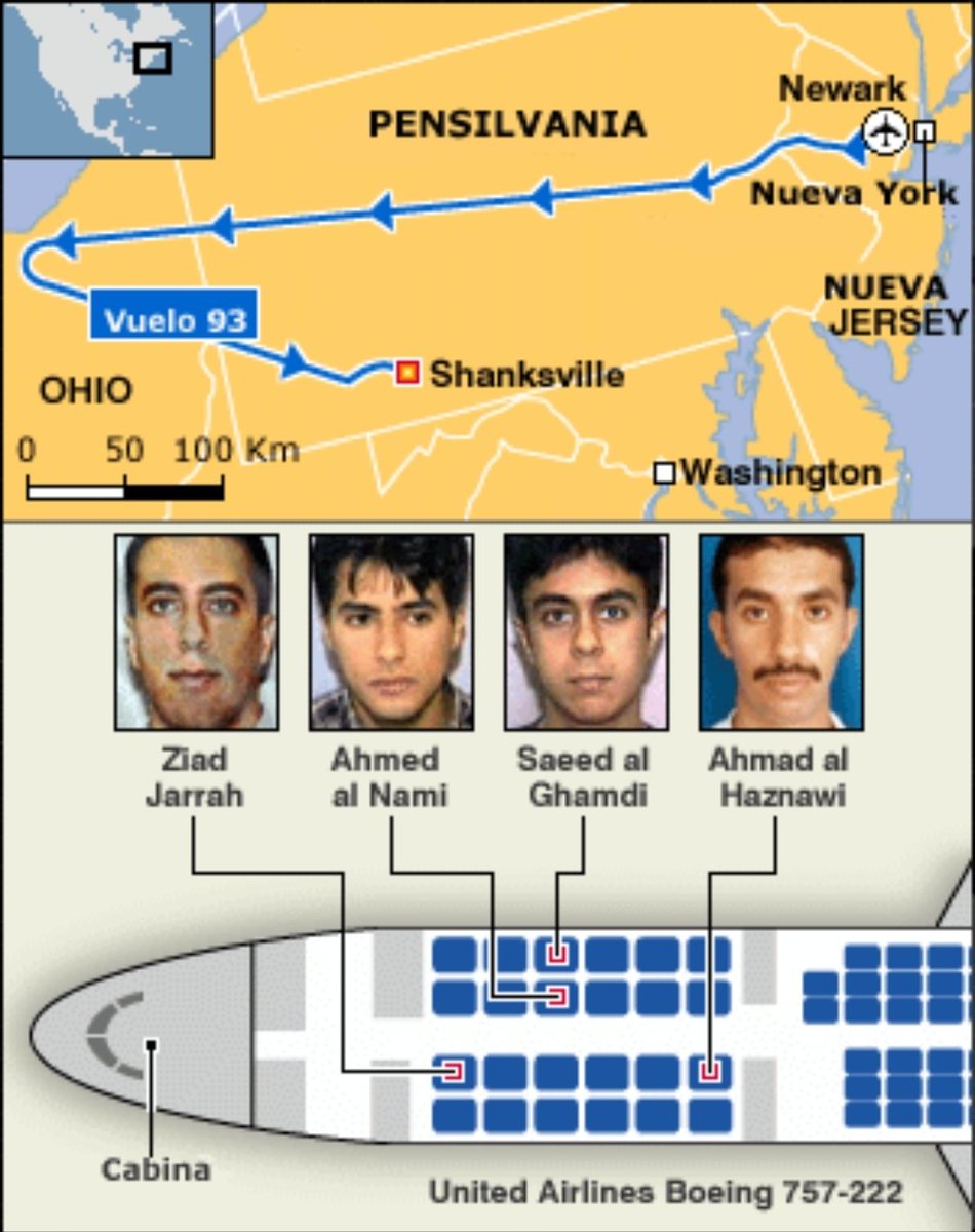 El último avión, el vuelo 93 de United Airlines, secuestrado por otros 4 terroristas.