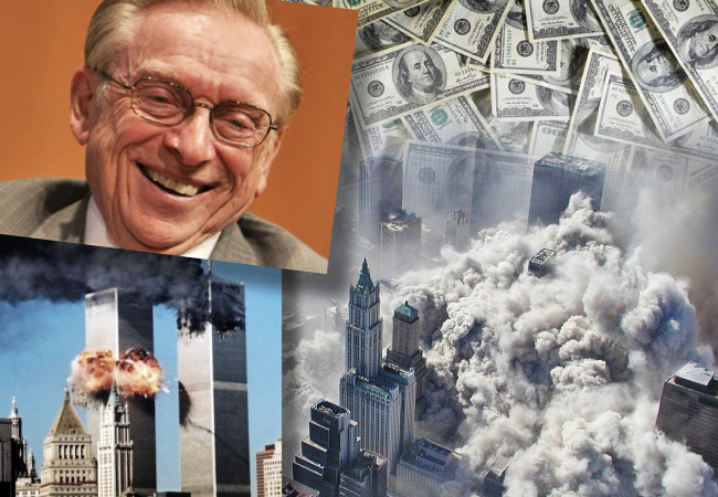Larry Silverstein, magnate que alquiló las Torres Gemelas dos meses antes del atentado y en ese contrato firmó una poliza de seguros millonaria en caso de atentado terrorista contra las torres.