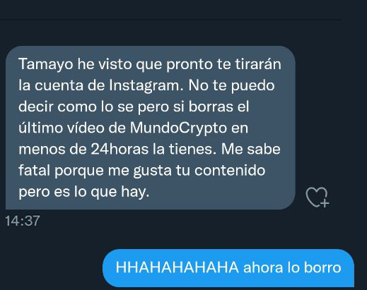 Mirando mensajes veo que varias cuentas me notifican que me la devolverán si borro el reportaje.