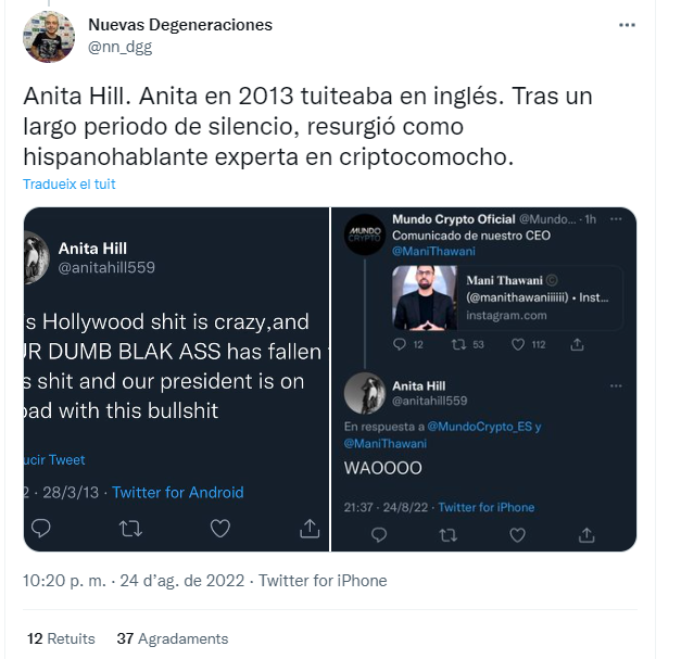 Desde entonces todo de cuentas me empiezan a linchar al segundo de subir un tuit sobre Mundo Crypto o Thawani. La mayoría de ellas se ve de lejos que son falsas como destapa el usuario @nn_dgg.