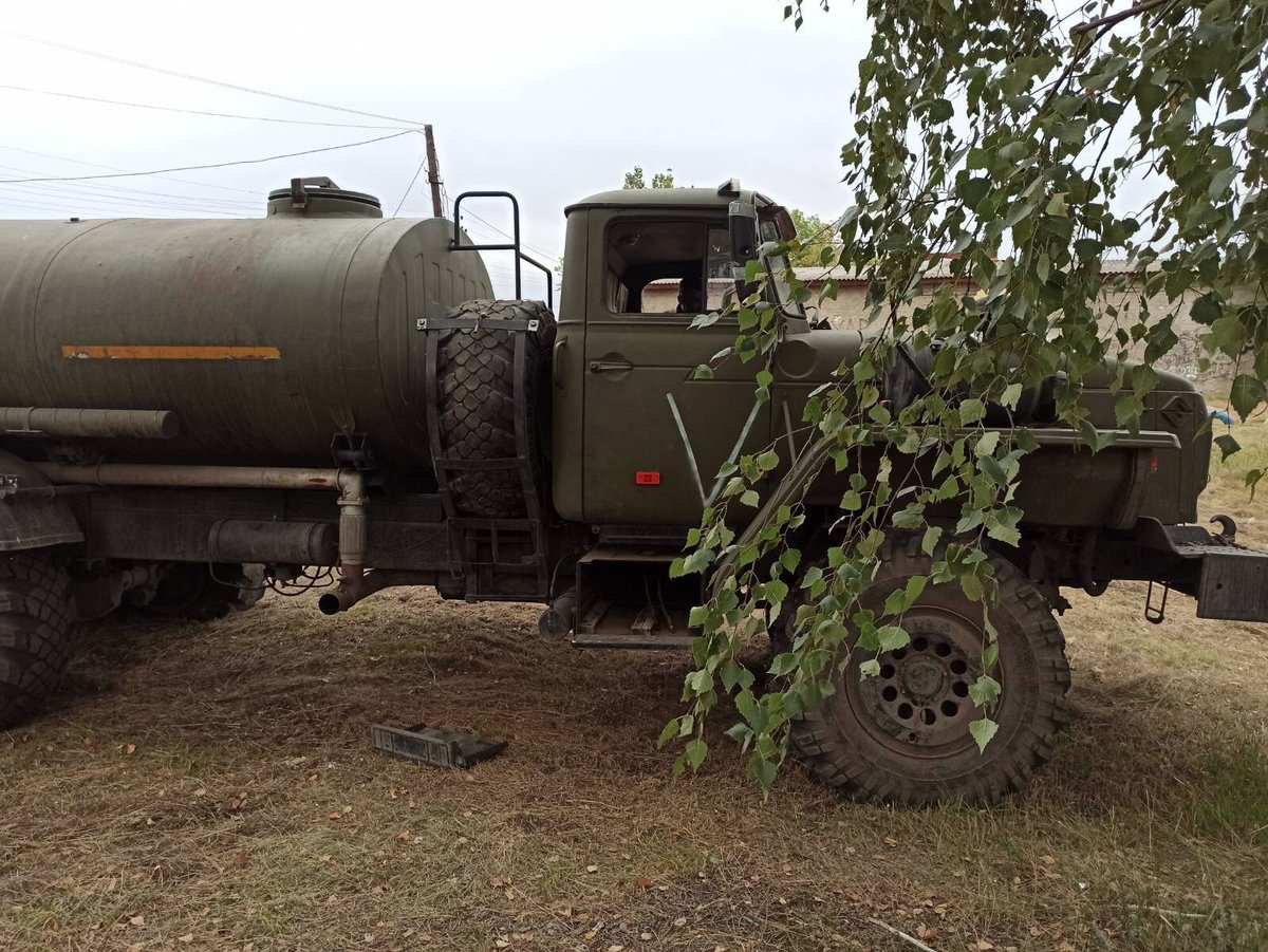 A rare event- a TOS-1A thermobaric launcher in bits, and a bonus fuel truck.