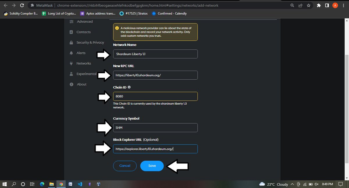 Now to add new networks to your Metama*k you can either do it automatically using chainlist.org but not all networks are there so you will have to do it manually, just like what we are doing now, follow the arrows in the images and add the following details.