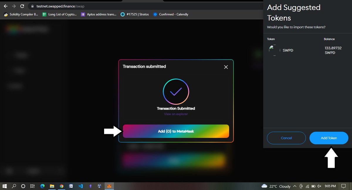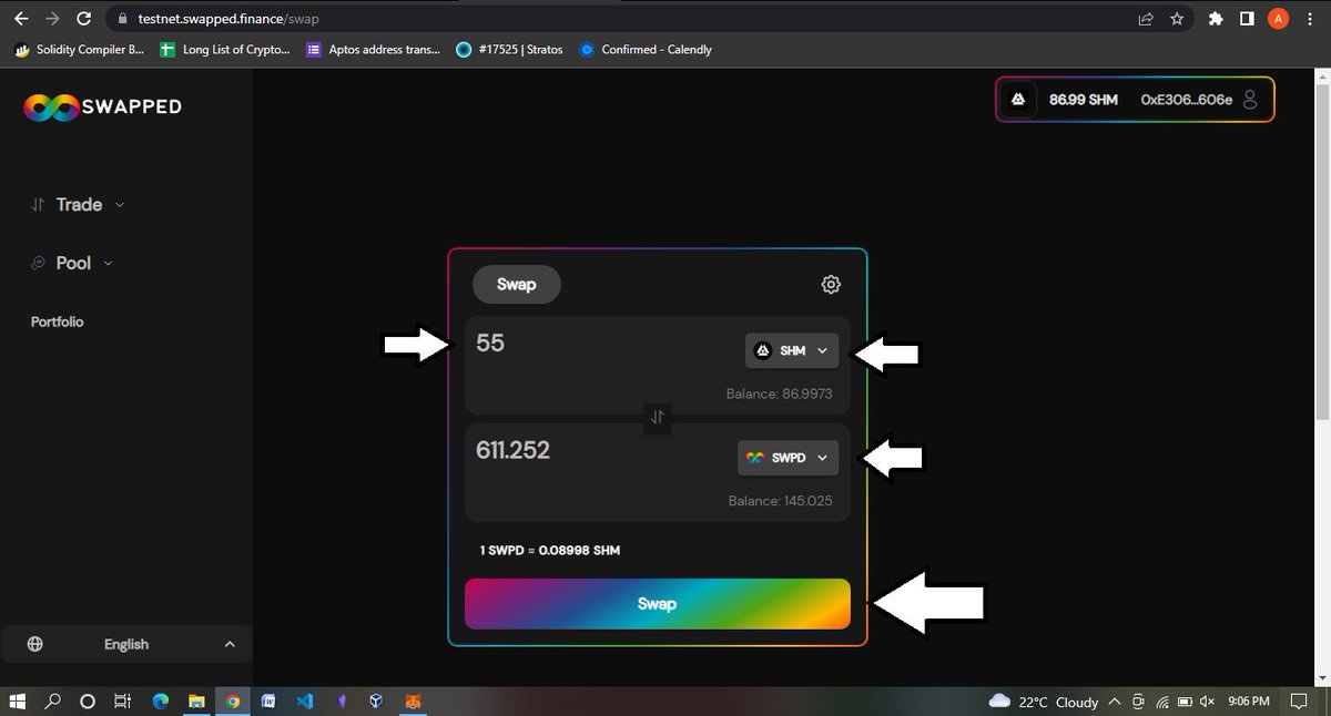 Now you should have a setup just like that in Frame 1 then Swap like 55 SHM to SWPD and confirm the transaction in your wallet and then tap on Add to Metama*k just like in Frame 4 and Sign the message that comes up.