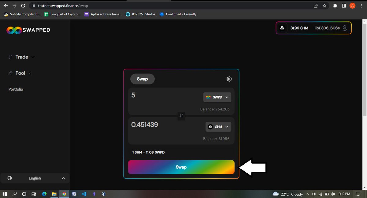 Note you don't have to do exactly the same amount of swaps I do, just do random amounts, I did 55 SHM to SWPD, and 5 SWPD to SHM, you can do 40, 30, or any different number it doesn't have to be the same, in fact, it's better it's not the same.