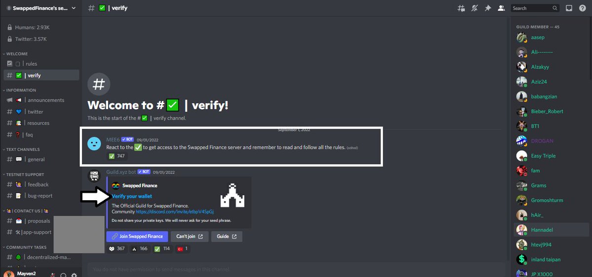 Now go back to the discord and tap on join swapped finance next and the bot should update your roles, now after you have successfully done all this you can click on the ✅ sign above. and you are fully fully done.