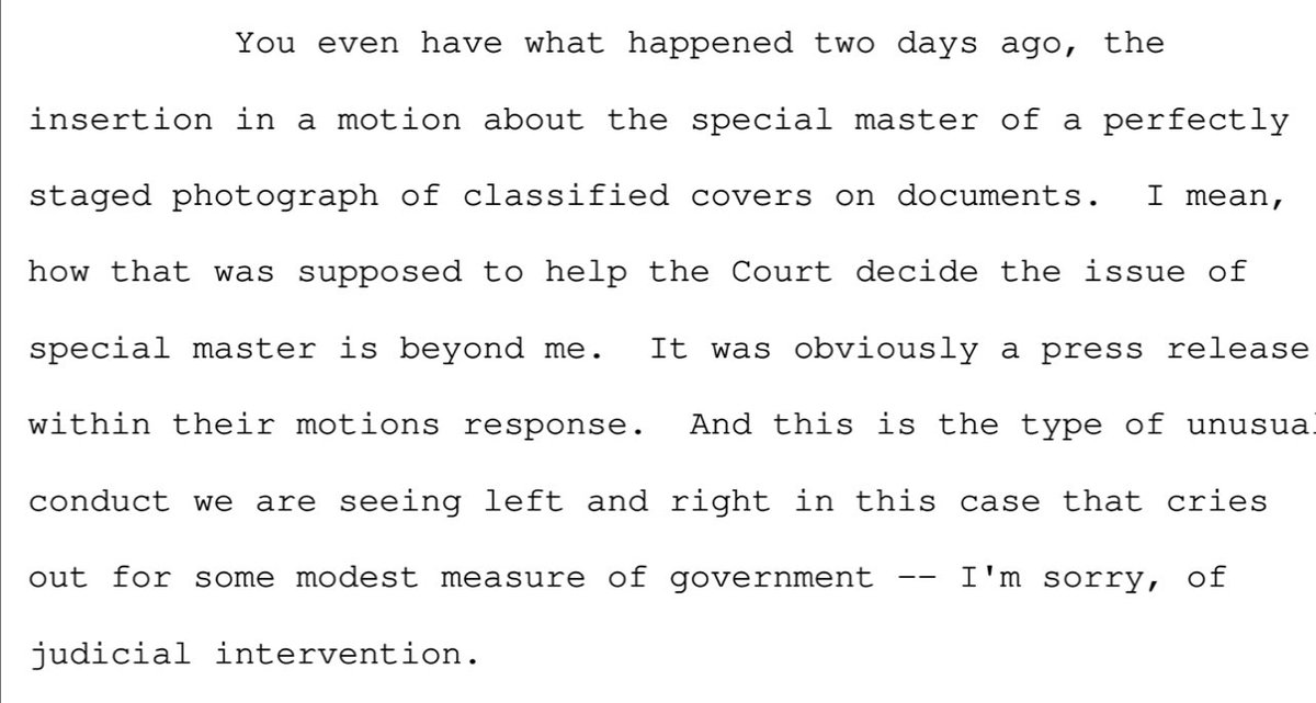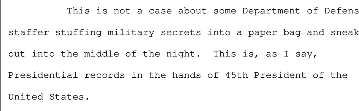 BREAKING: from the special master hearing transcript. We don’t need to link Donald to the documents. His lawyer says “we are talking about presidential records in the hands of the 45th president.” I’m doing a whole thread in a bit, but thought you’d want to see this.