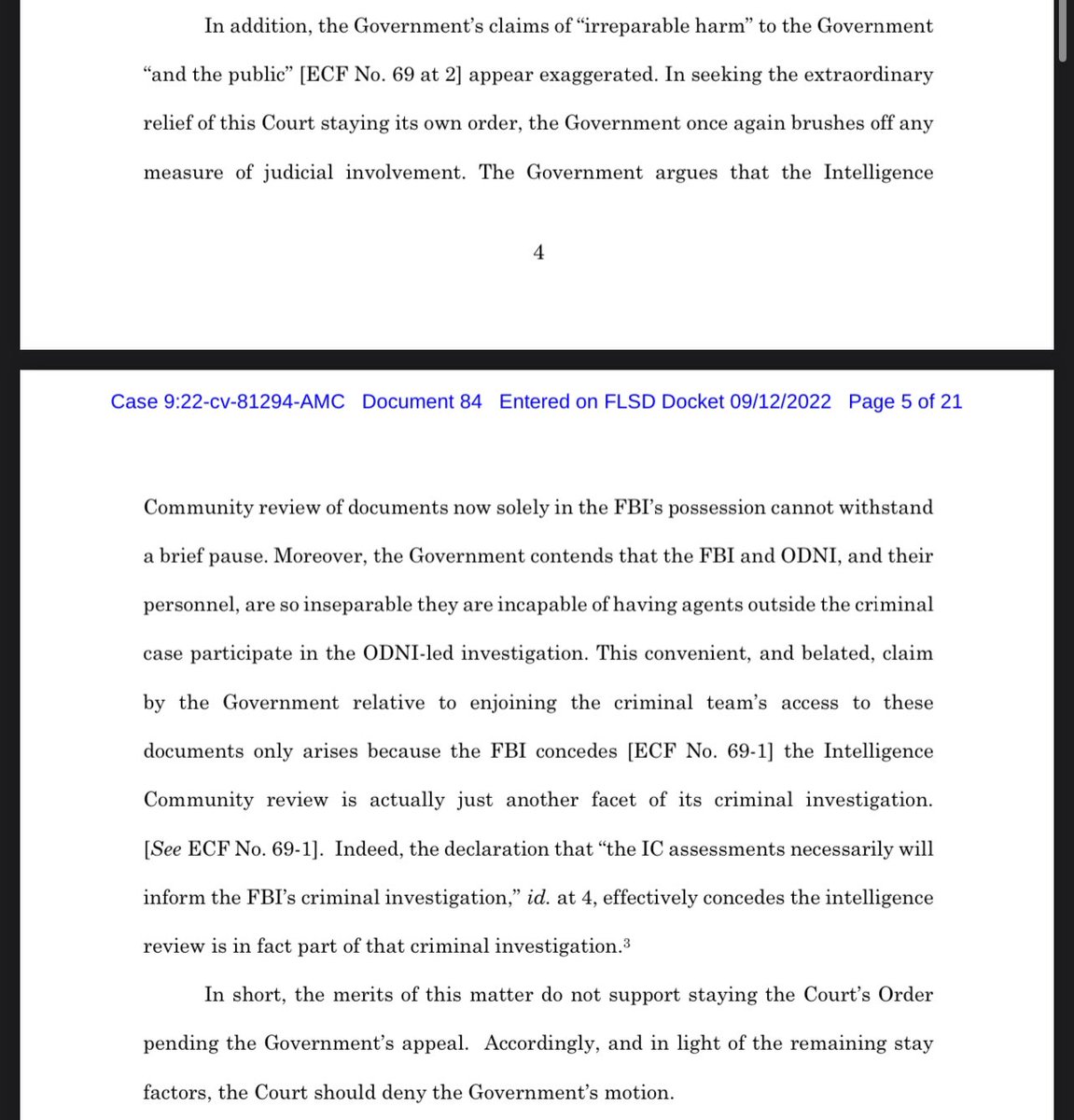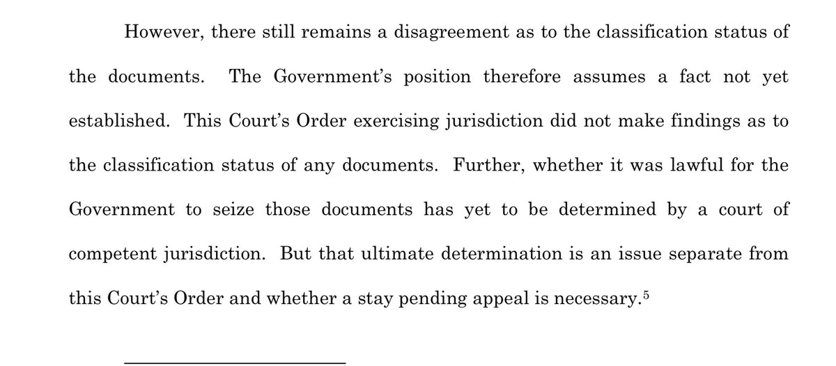 So, they argue trump maybe declassified some of them, that he has the discretion to call them presidential records (which kills her jurisdiction), and the one I think Cannon will adopt: the DoJ can’t be irreparably harmed since they leaked all this (YOU ASKED FOR IT). 10/
