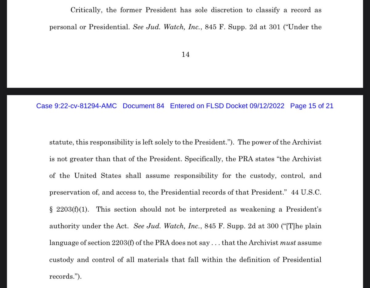 Here, they just flat out lie and say a former president can declare documents presidential or personal. 8/