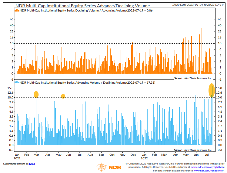 Going thru charts, these 5 stood out: 1. Friday was a 12:1 up day (advancing volume/declining volume) based on NDR Multi-Cap universe. For a double 10:1 up day, we need another 10:1 day because the Aug 10 10:1 up day was negated by the Aug 22 10:1 down day. @NDR_Research 1/5