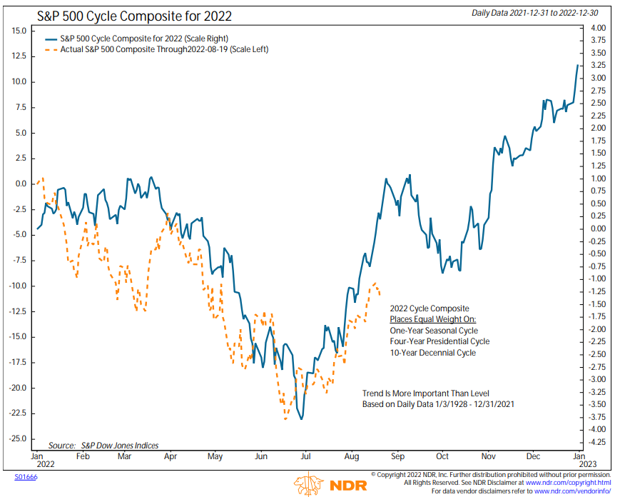 3. @NDR_Research Cycle Composite is the average of the 1, 4, and 10-year cycles. The 1-year cycle posts a summer high on 9/6 and a low on 10/25. I'm giving exact dates but don't get hung up on them. Different number of trading days some months make lining up for 2022 tricky. 3/5