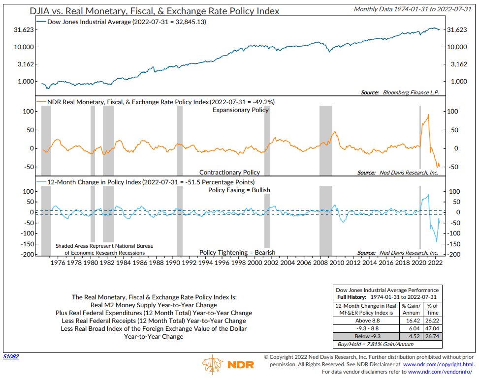 Going thru charts, these 5 stood out: 1. With all the focus on the Fed, don't forget fiscal policy has been very tight for over a year. The @NDR_Research Monetary & Fiscal Policy Index peaked in March 2021. On y/y basis, it's been getting less bad even as the Fed tightened. 1/5