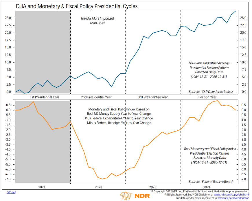 2. An improvement in gov't policy would be in line with the presidential cycle. Monetary & fiscal policy tends to be restrictive after the presidential election, trough before midterm elections, and accelerate into the presidential election. r/t @WillieDelwiche 2/5