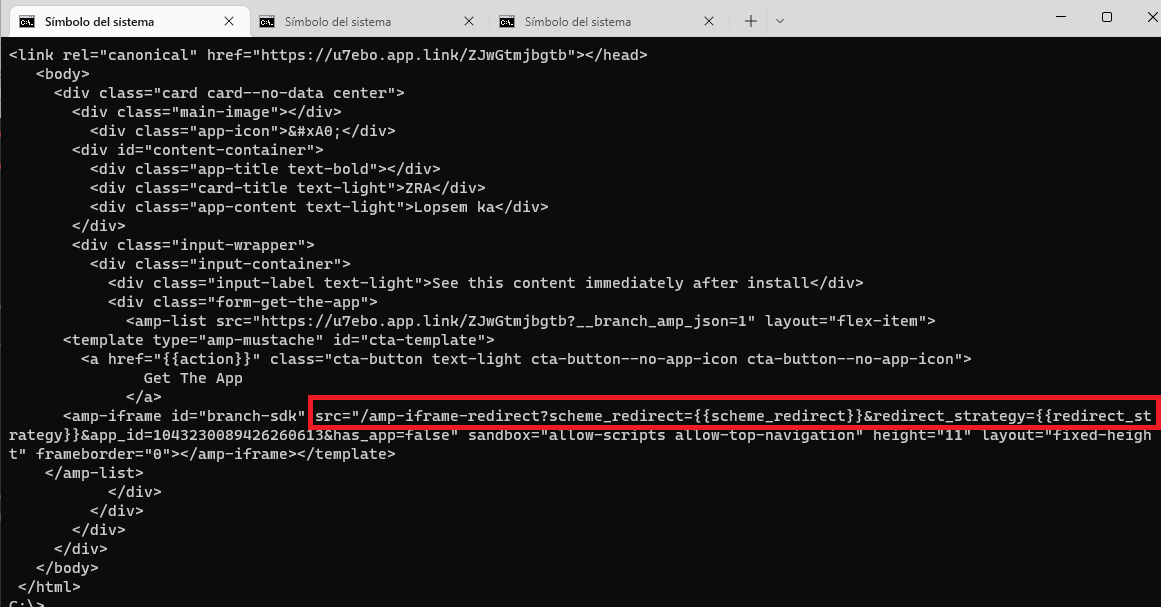 Bajamos por el código y vemos que al final carga un iframe, y muestra un "redirect". Es decir, una redirección a otra URL. ¿Pero dónde?