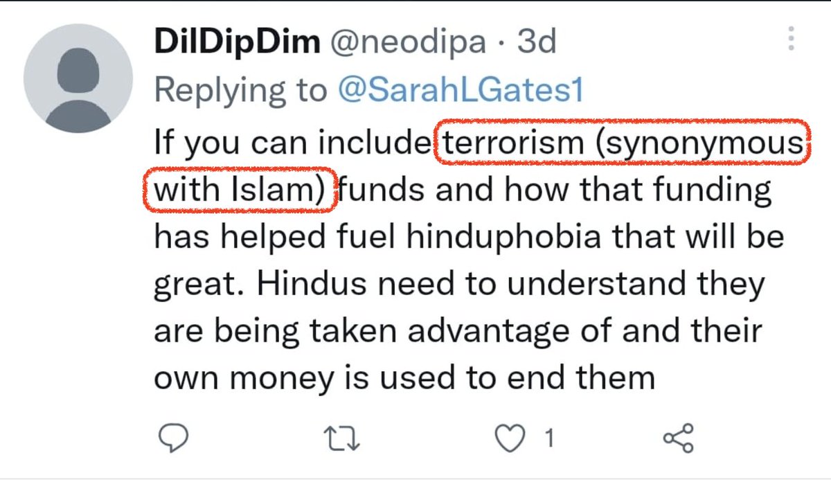 This is a part of an ongoing empirical data collection on the Hinduphobia Hate Construct.