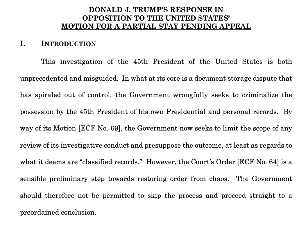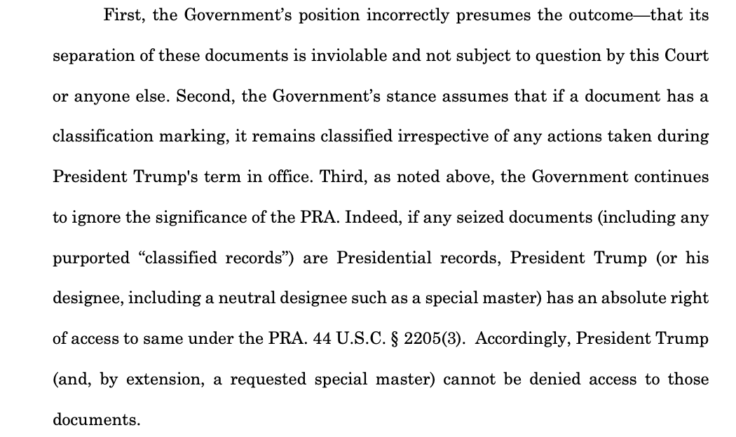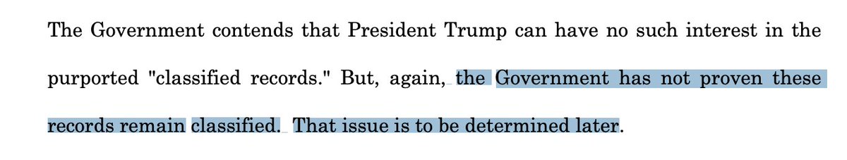MORE: DOJ has asked Judge Cannon to stay parts of her order, saying the national secyrity review is inextricably linked tot he criminal investigation and can't be seaprated. storage.courtlistener.com/recap/gov.usco…