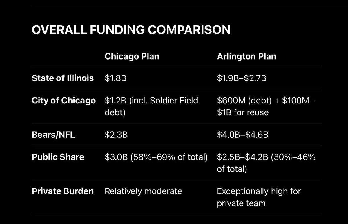 Arlington may seem privately funded, but taxpayers could face $2.5B–$4.2B for roads, subsidies & Soldier Field’s future. Chicago’s plan starts at $3B but could hit $5B if refinanced like the 2002 Soldier Field deal.