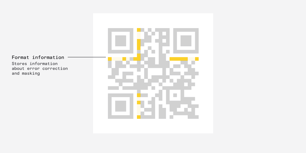 This is where the error correction information is stored so that it can be read if partially obscured. The way this works is actually really really complex so I'll leave that out.