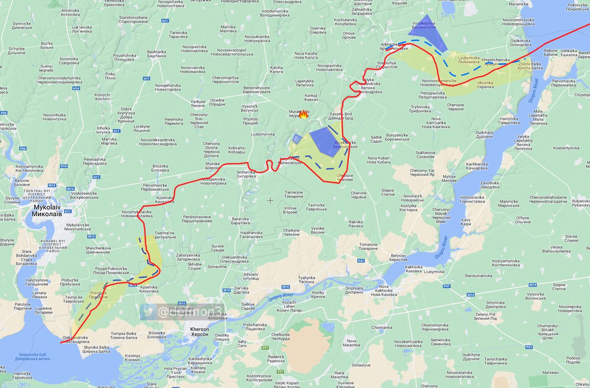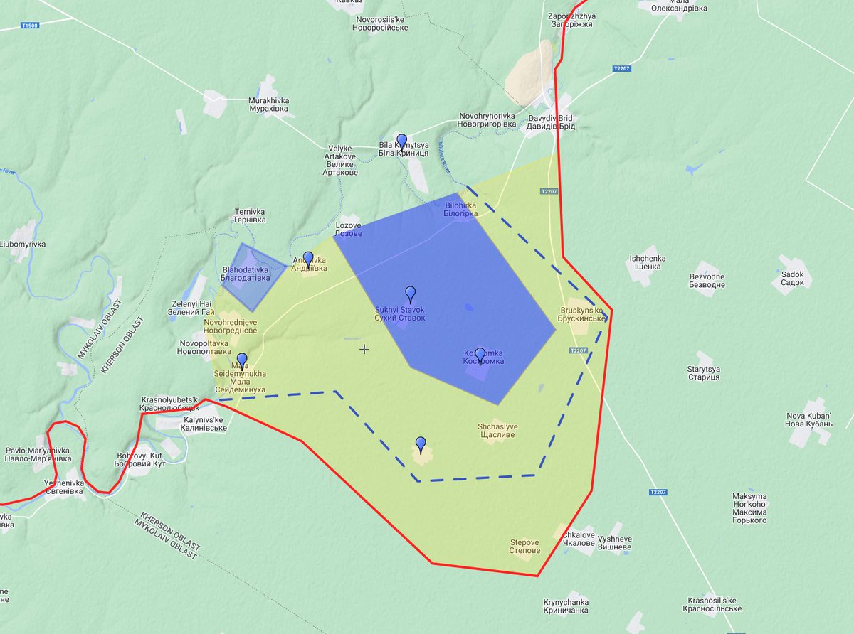 The AFU seems to be progressing slowly along the Ingulets river to the south of their stabled bridgehead.