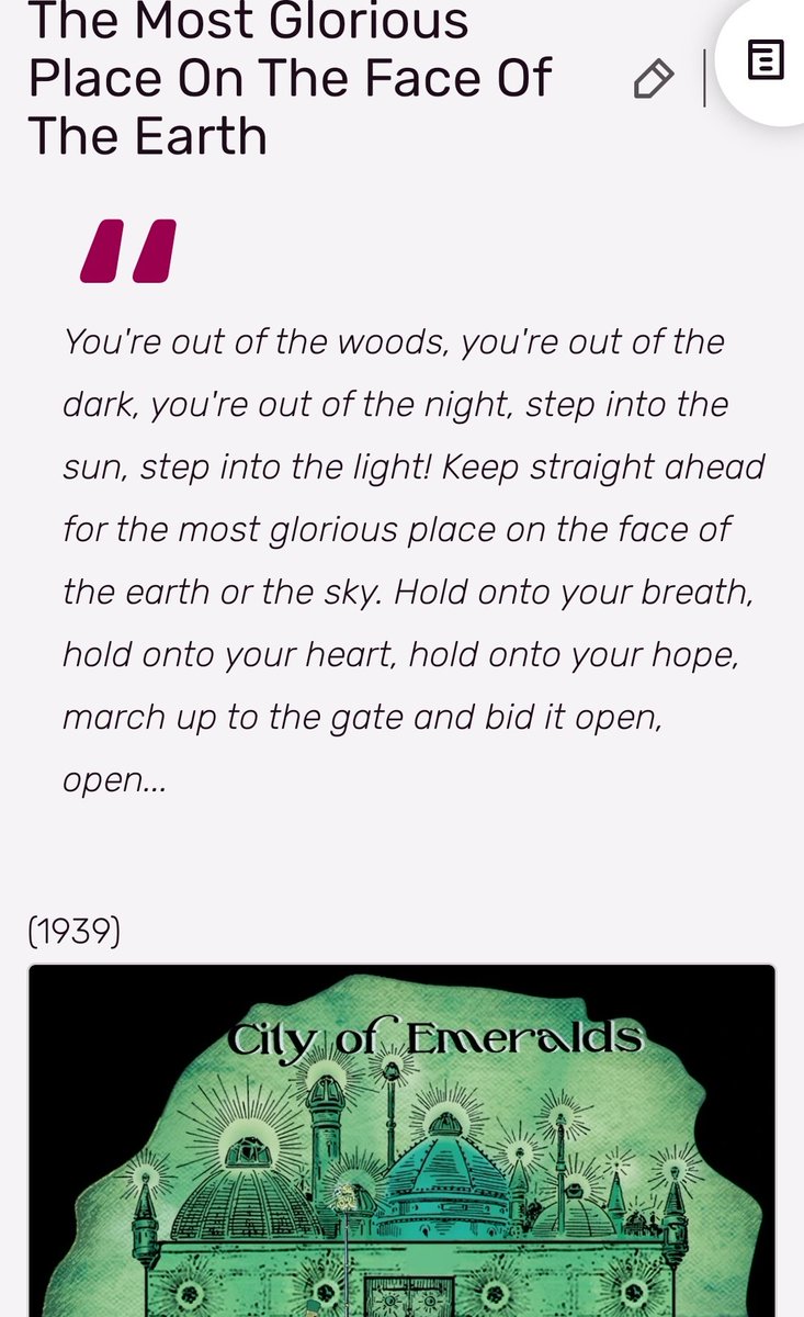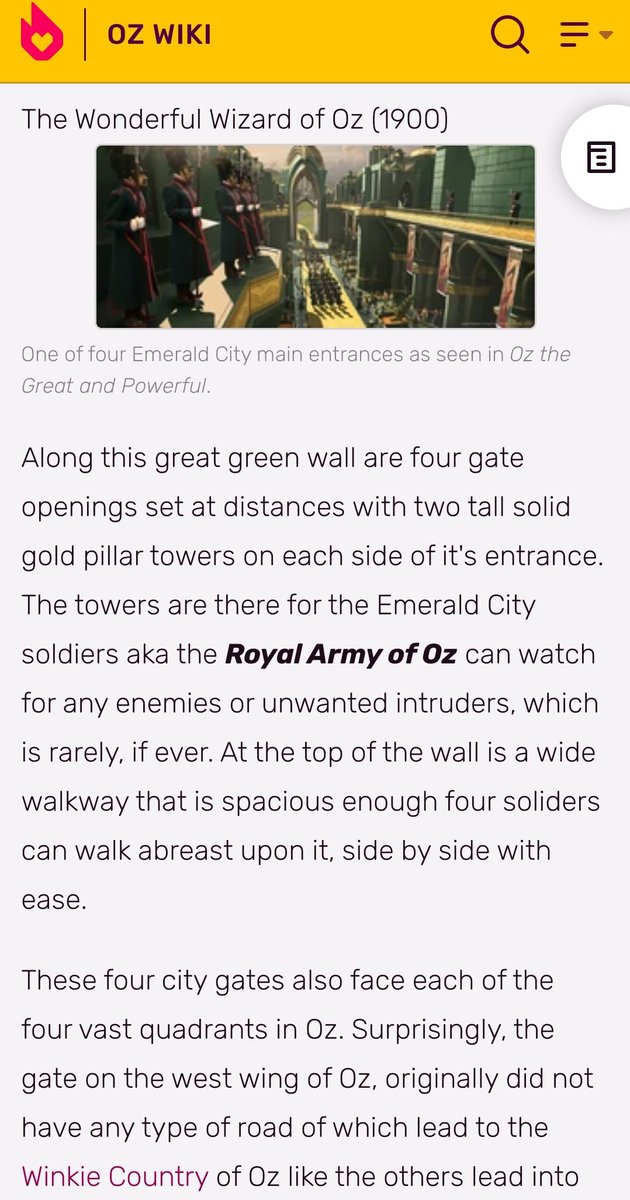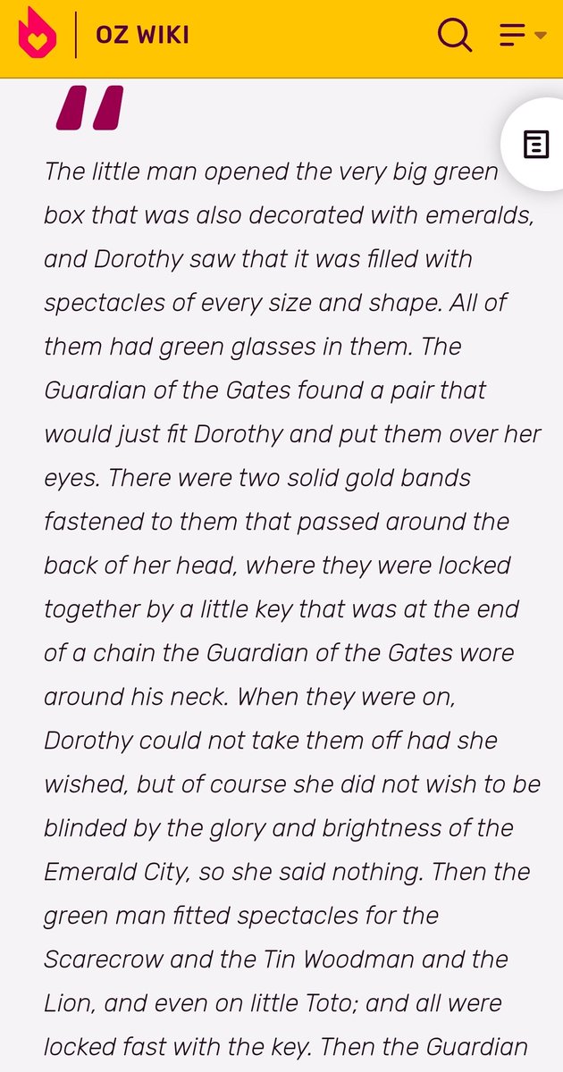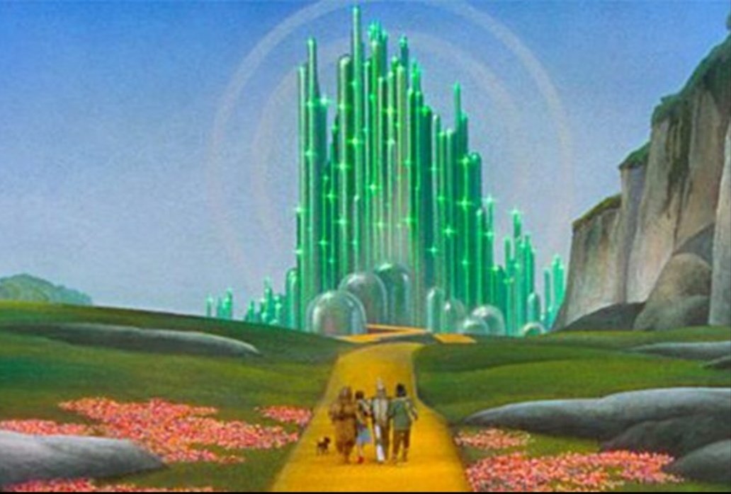 "Taking a big Golden Key encrusted with jewels from a peg on the wall, he opened another Gate, and they all followed him through the Portal into the streets of the Emerald City."