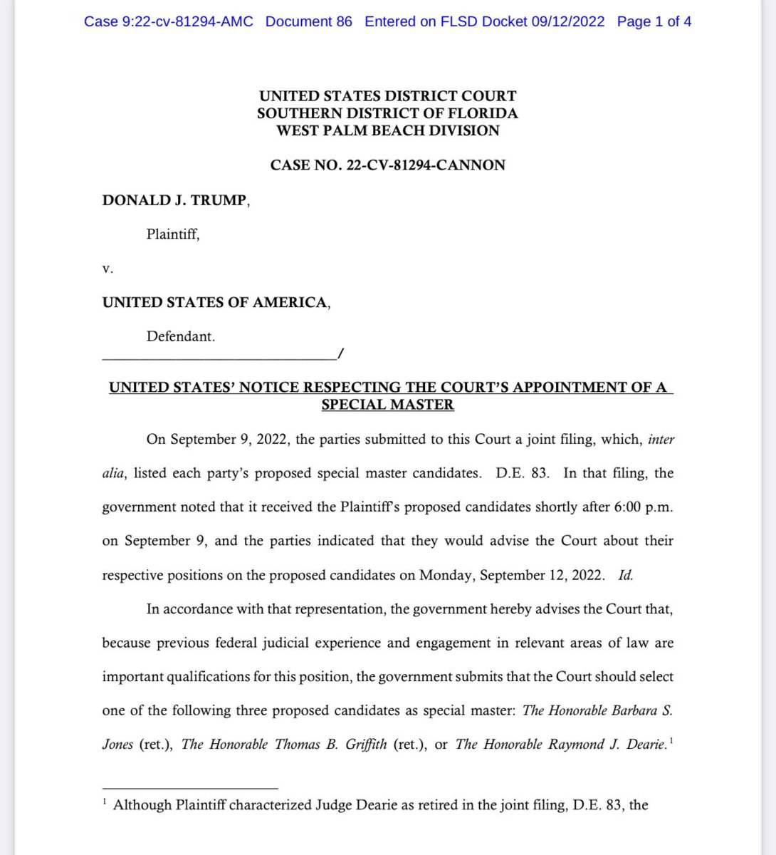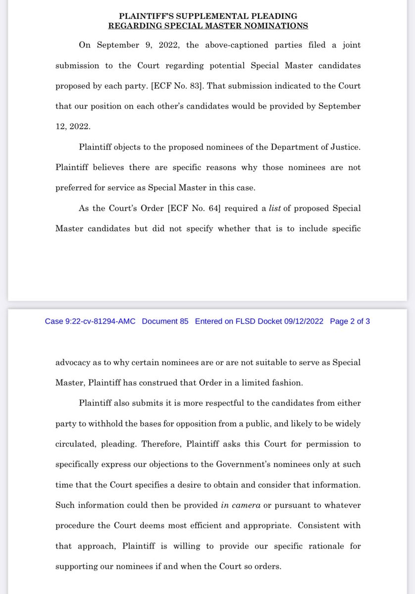 LOL WHUT: Trump’s lawyers say they object to DOJ’s proposed special master candidates but also don’t want to say why in public because they … don’t want to hurt their feelings or something?