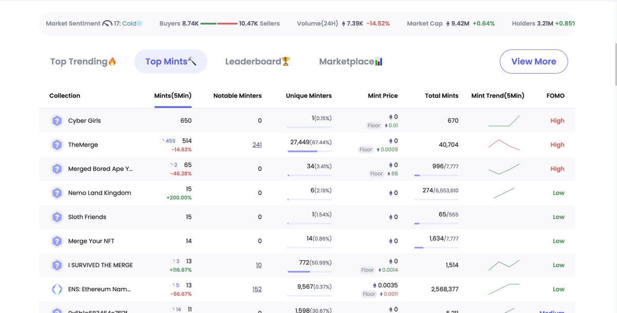 To help our users make the best decisions, we've developed new mint metrics, including Mint Price, Mint Trend, and Total Mints to show the mint progress!