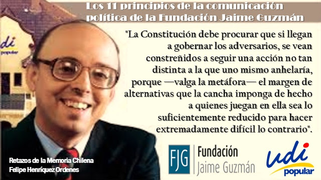 Jaime Guzmán fue el abogado y asesor más cercano a Pinochet y el principal promotor de la Constitución aprobada durante la dictadura con la intención de que sus principios se impongan si llegaran a gobernar los adversarios con estrecho margen de cambios al estado ultraliberal.