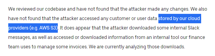 That first sentence is sketchy, because "no evidence" could mean the attacker did have access, Uber just hasn't found evidence that the attacker *used* that access for "sensitive" user data. Explicitly saying "sensitive" user data rather than user data overall is also weird. 20/N