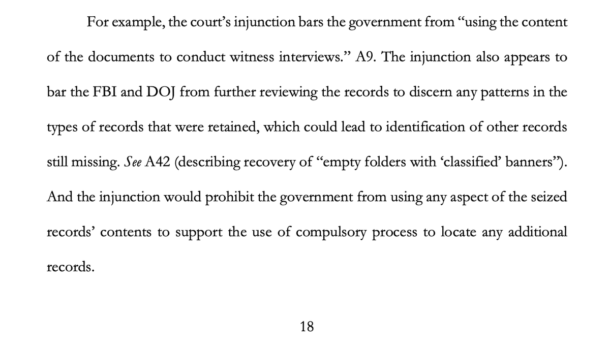On DOJ's claims about the classified docs: "The Court does not find it appropriate to accept the Government’s conclusions on these important and disputed issues without further review by a neutral third party in an expedited and orderly fashion."
