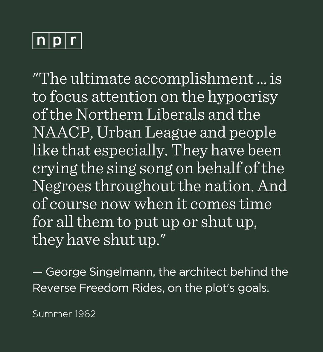 But the prevailing sentiment was that the rides exposed the callousness of the Southern segregationists, not the hypocrisy of Northern liberals.