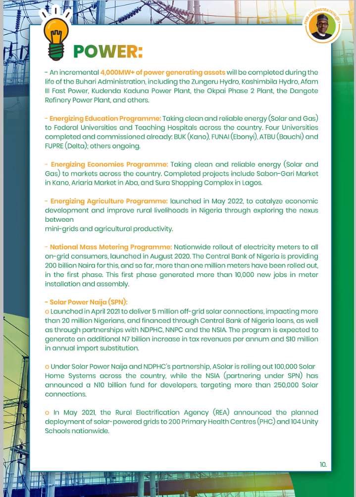 education, health, infrastructure, oil and gas etc are already being tackled verifiably by the Buhari administration.