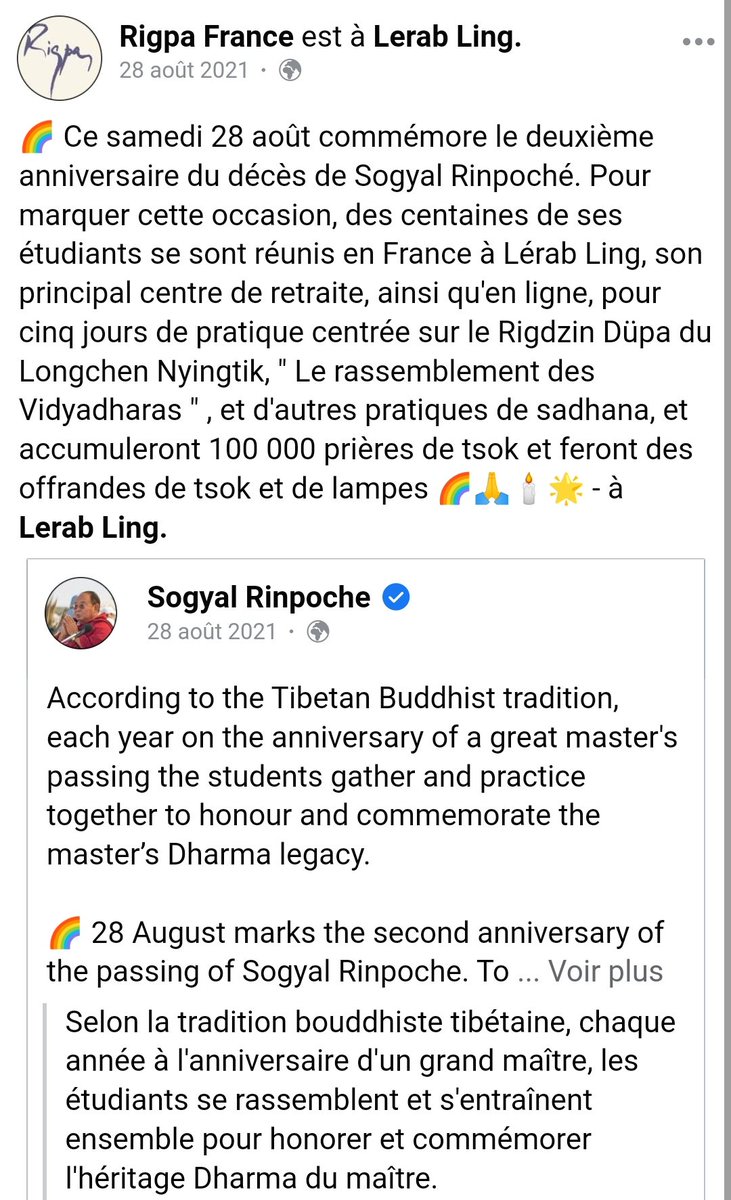 Ce qui n'empêche nullement Rigpa France de continuer en catimini à rendre hommage à son fondateur. Un commentaire @UBF_Actu ?