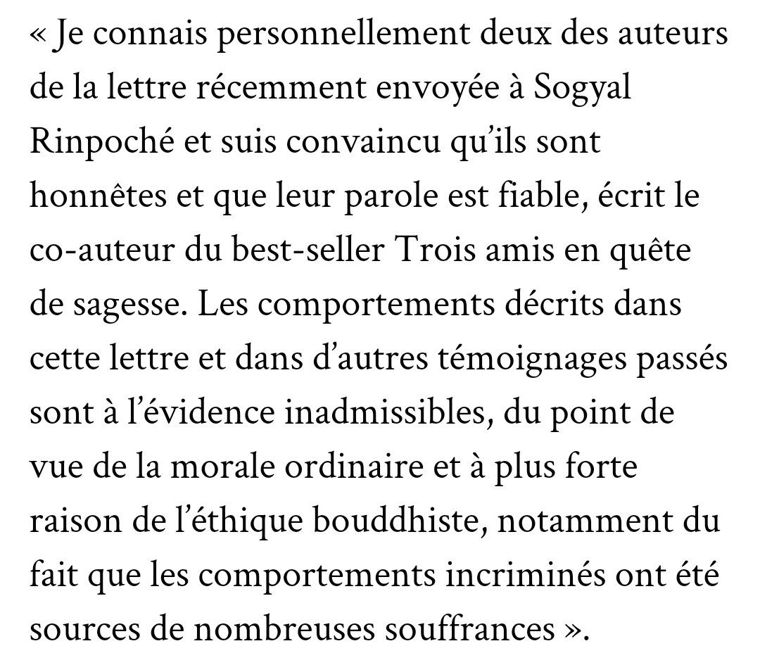 Les bruits couraient depuis 1994. Ce qui est hallucinant rétrospectivement c'est de voir que dans une certaine presse enbouddhisée, en 2016, on écrivait encore pépouze que Sogyal abusait de femmes sans que ça fasse trembler des genoux les journalistes. lemonde.fr/livres/article…