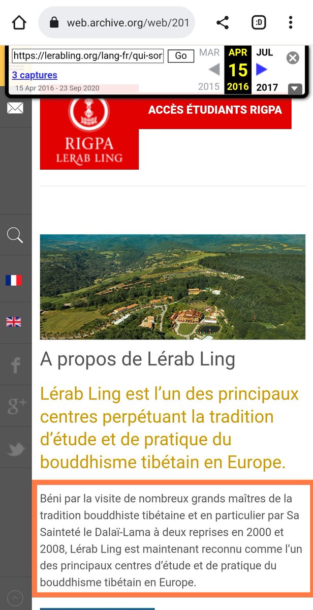 Surtout quand le site du principal centre de Sogyal écrit ceci. (en 2016 et en 2022)