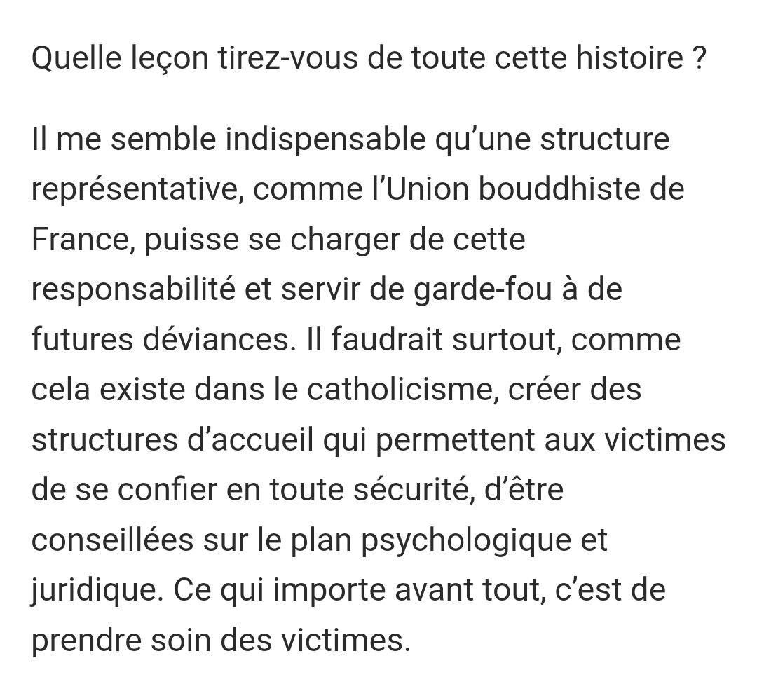 Ensuite il y a le couplet, assez dégueu, sur la bêtise (appelons un chat un chat) des victimes. En 2022, Matthieu Ricard est un peu plus soft qu'en 2017. Le traumatisme des abus dans l'Église catholique est passé par là. Mais le message est le même.