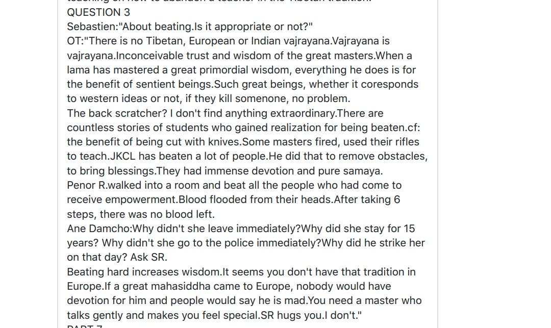 Le coup du gratte-dos ? [Sogyal battait ses victimes avec, NDLR] Je n'y trouve rien d'extraordinaire. Il y a d'innombrables histoires