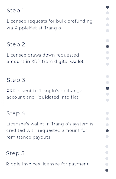 2. Here's the steps, collated from the scrolling box. A customer makes their request to Tranglo and then pulls #XRP from their (licensee's) #Ripple held wallet and then exchanged via Tranglo's exchange account for fiat and into their Tranglo wallet.