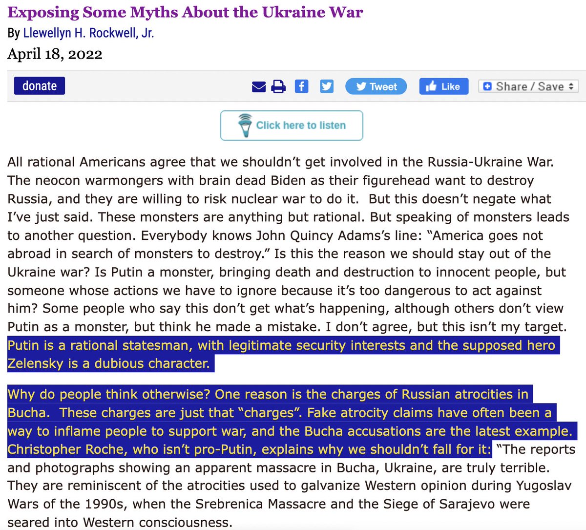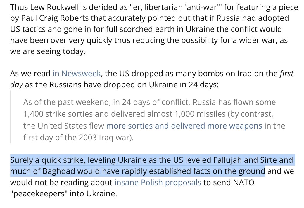 Of course they would also deny Putin doing anything wrong: lewrockwell.com/2022/04/lew-ro… in fact, for e.g. Paul Craig Roberts and Walter Block, Putin is *too soft*, if anything. it's the classic "didn't but should have".