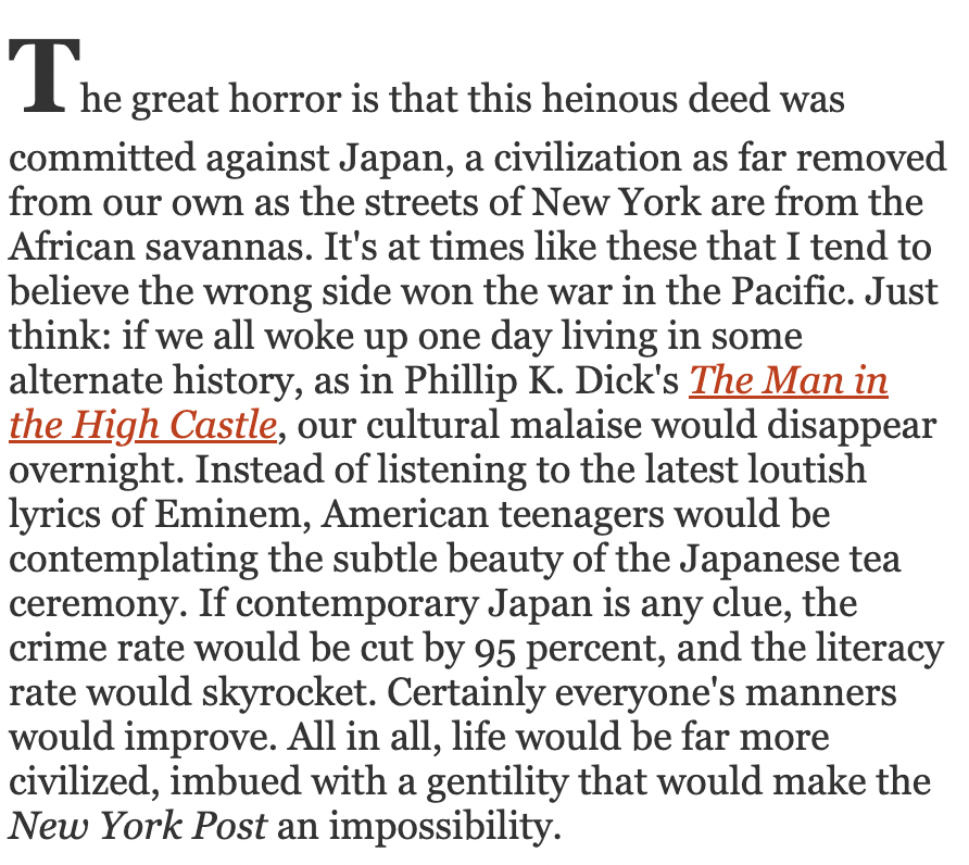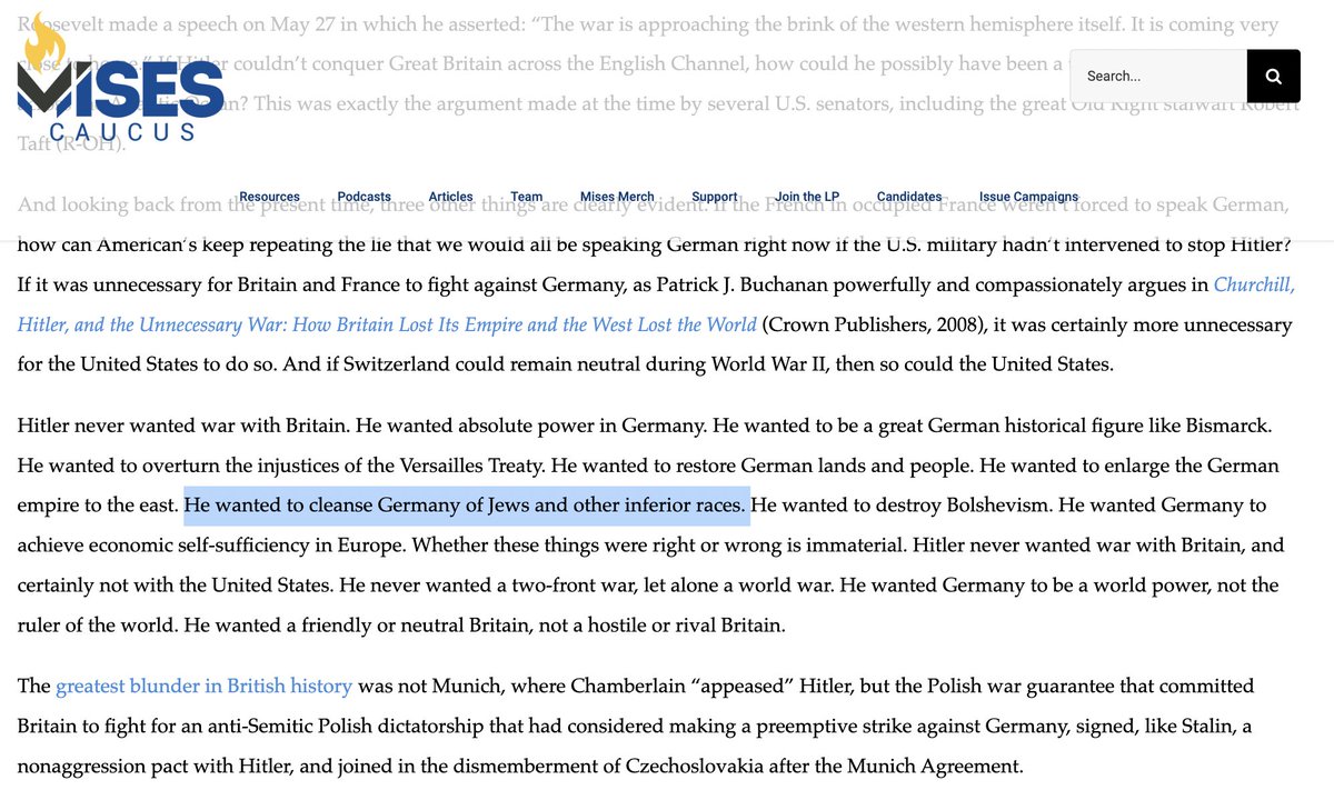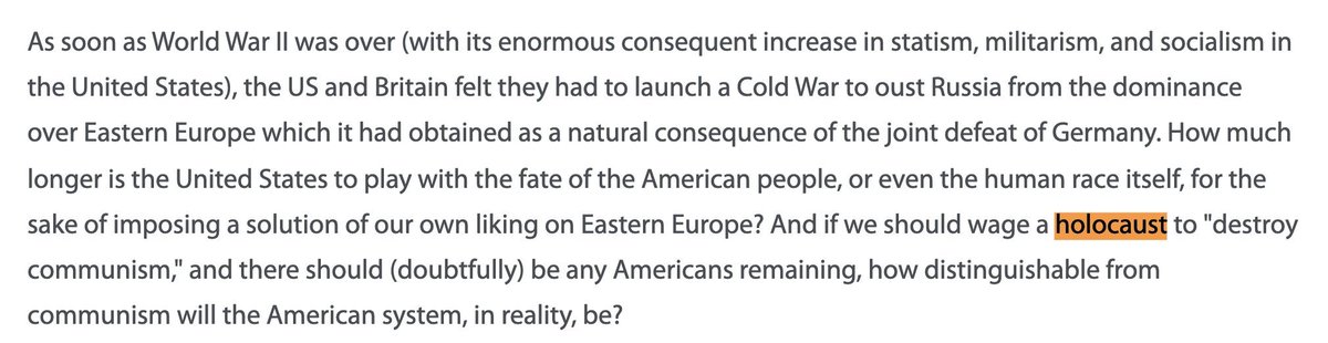 Notice the only mention of "holocaust" is about something the US could do. Not something Nazi Germany did 🙄 (again, the WWII revisionism here is awful on its own). Holocaust, Hungerplan, etc are mere "domestic programs", if not denied entirely.