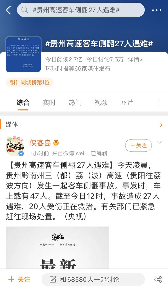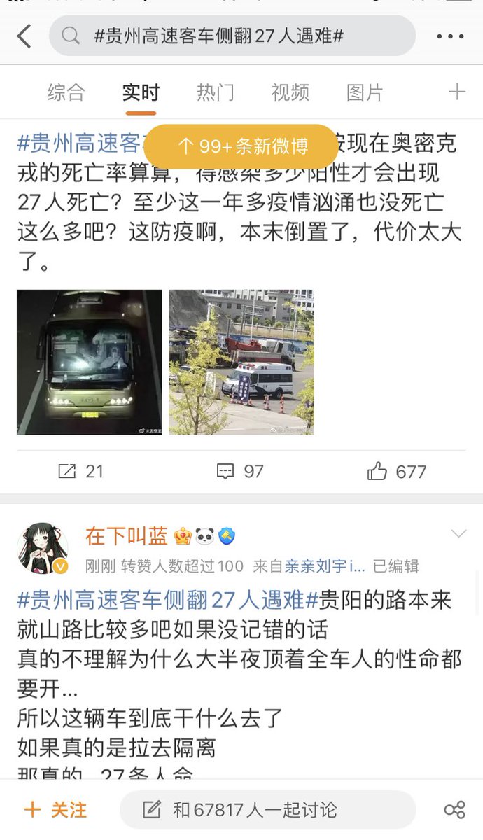 To achieve its “zero Covid” goal on the 19th, Guiyang transfers positives and close contacts to surrounding counties. Early hours of this morning, a transfer bus heading to Libo had a rollover accident, which tragically killed 27 passengers. 20 people are still under treatment.