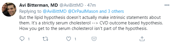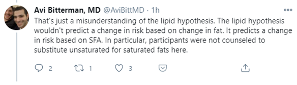 To clarify, this study reduced sat fat intake and serum cholesterol (modestly) - despite this, death rates increased. Difficult to understand how it does not challenge lipid hypothesis. I am not interested in a hypothesis which does not consider mortality an outcome of interest.