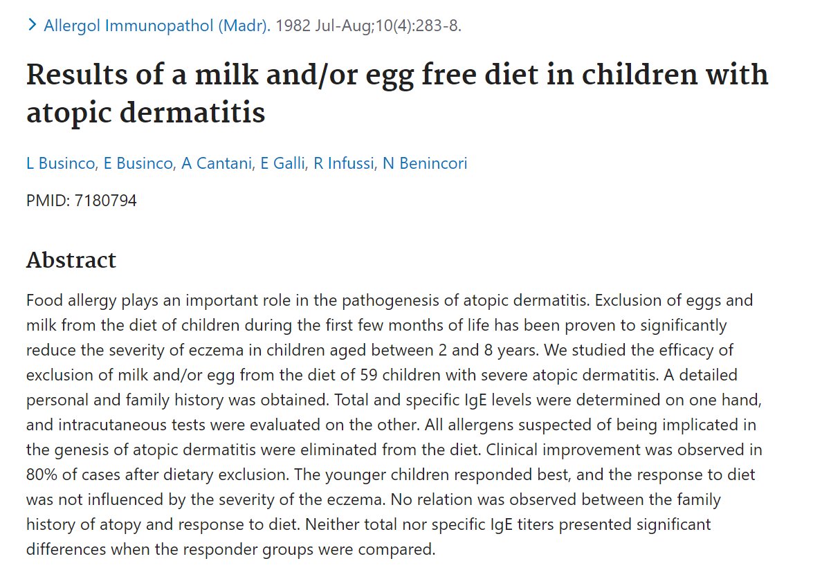 The use of milk elimination diets to treat eczema is not new. A 1982 study found 80% of cases of atopic dermatitis (eczema) improved with dairy and egg elimination.